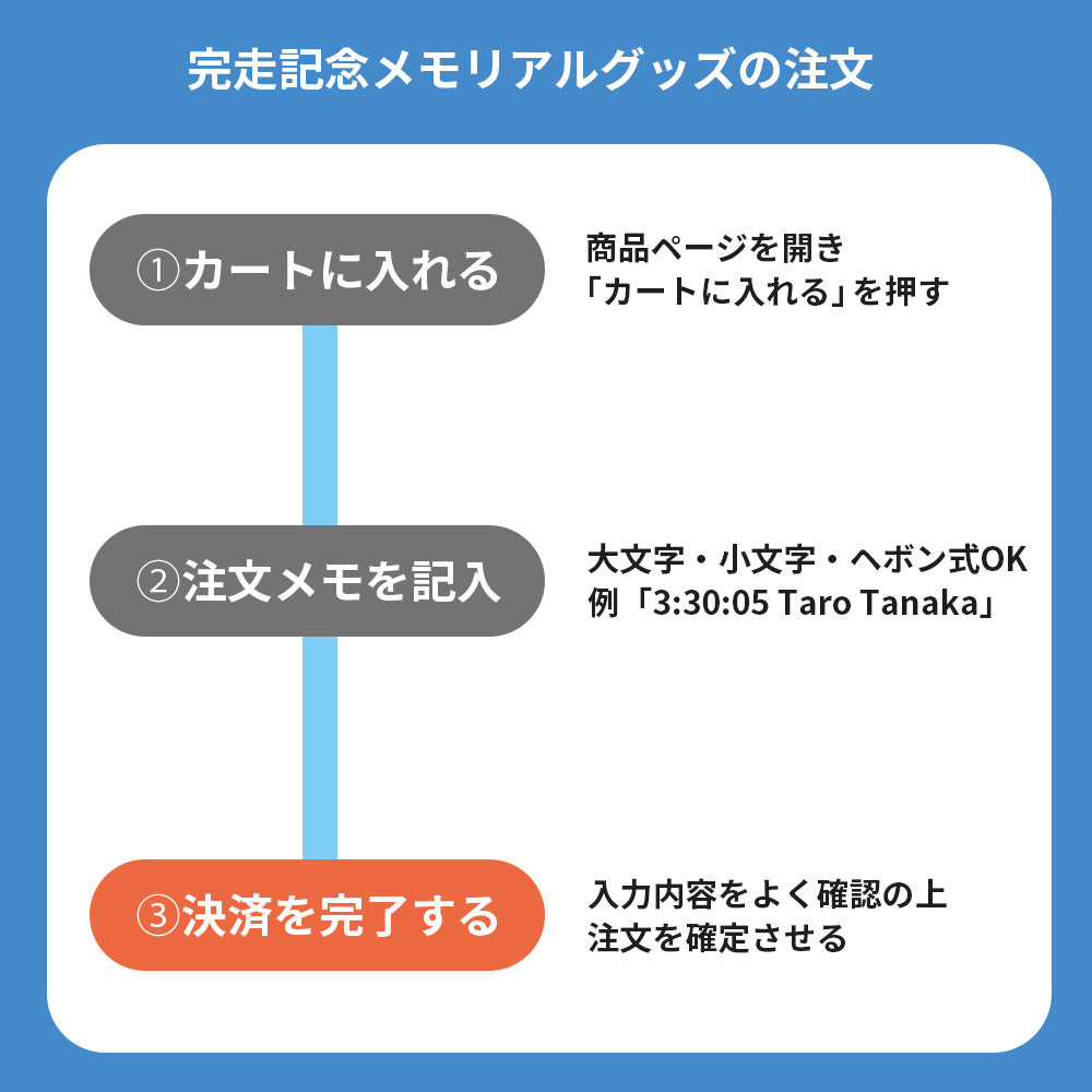 お名前(アルファベット)タイム等の表記は注文時に自己申告制です。ご注文前に申し込み方法を必ずご確認ください。こちらから▶