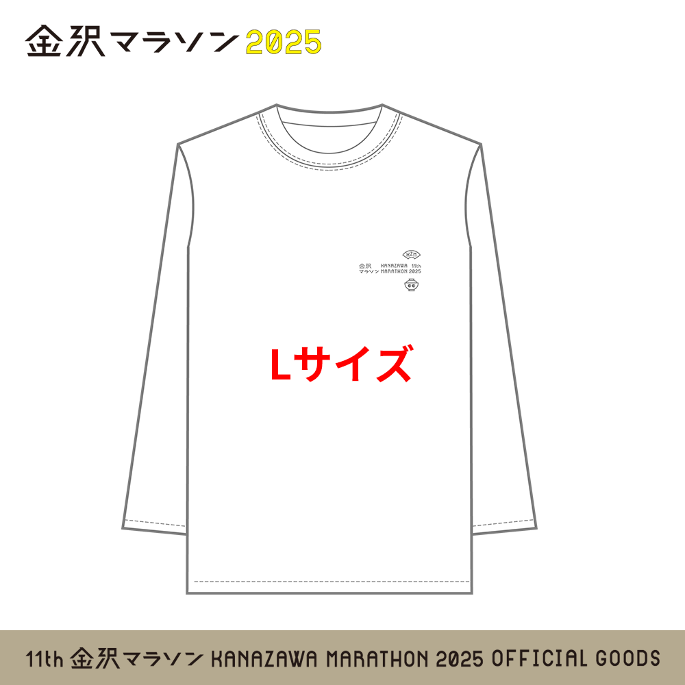 10月26日開催、「金沢マラソン2025」公式グッズのドライロングTシャツです。胸元と背中のプリントがシンプルで使いやすいロングTシャツです。白地、4サイズ。