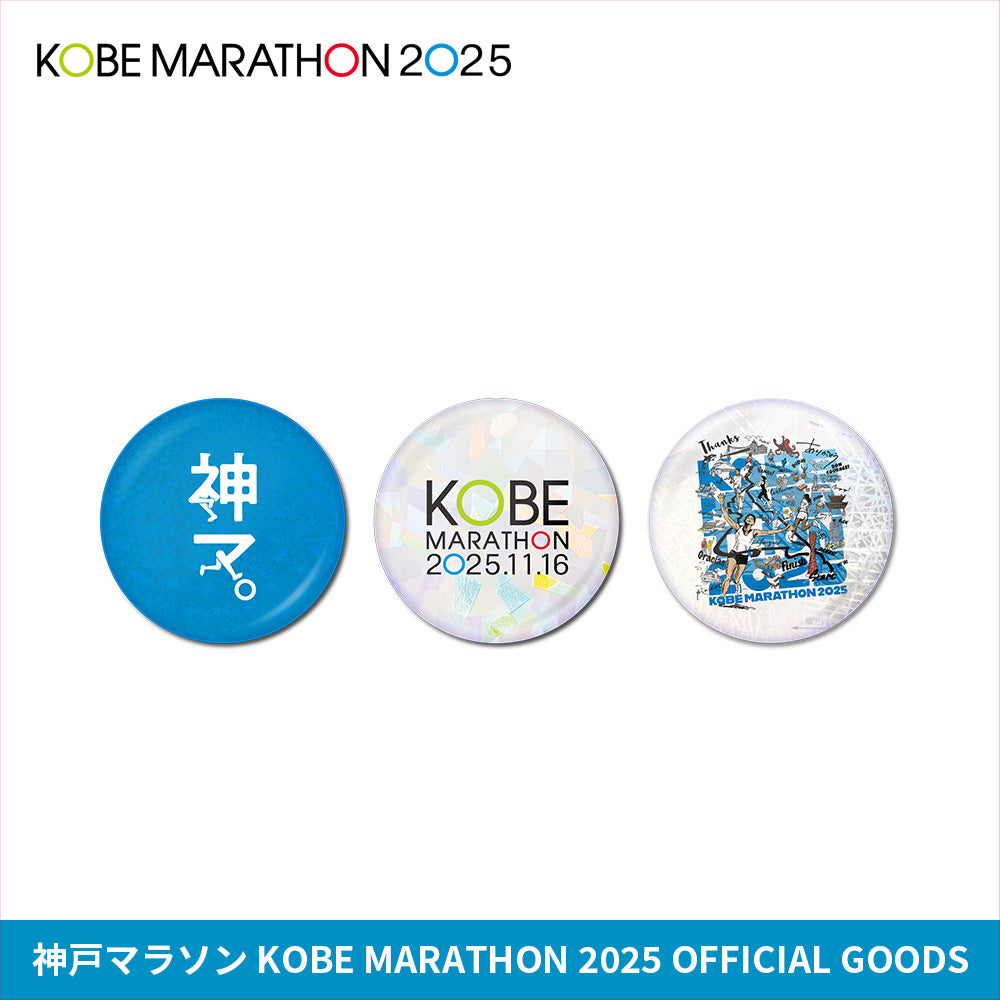 11月16日開催、「神戸マラソン2025」のホログラム缶バッジです。全3種。